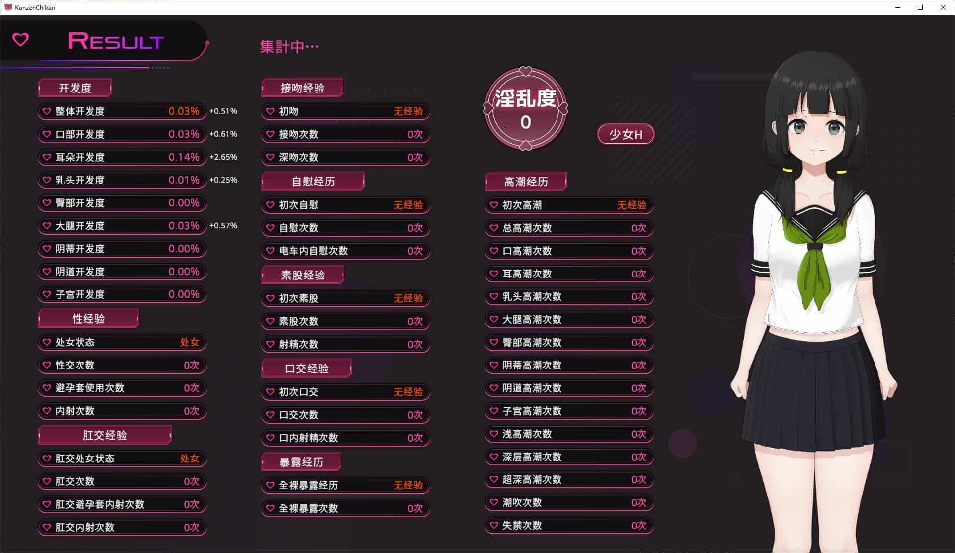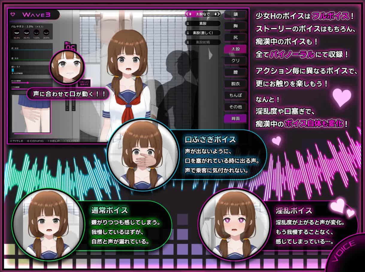 流程是经典的逐渐调教开发美少女,从耳朵小嘴到R头大腿能逗弄,并且提升总的淫乱度解锁更多动作