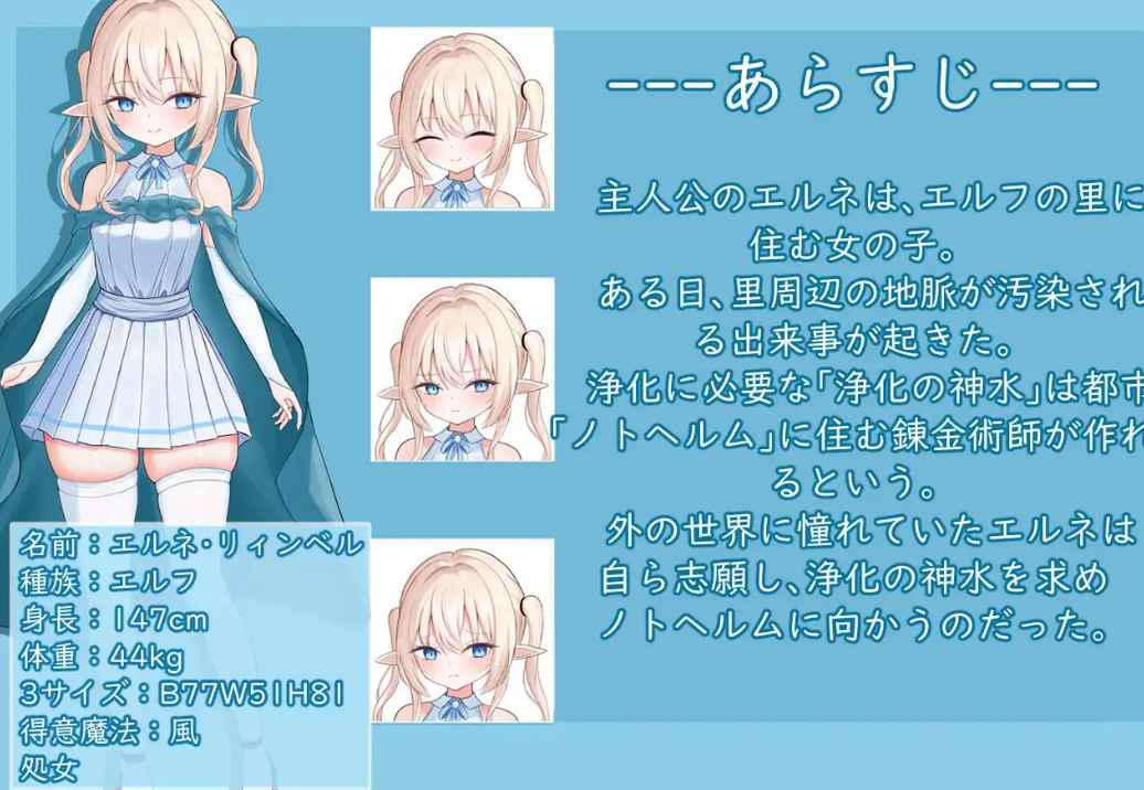 主人公艾尔涅是住在“精灵之树”管理的精灵村落里的魔法使少女。